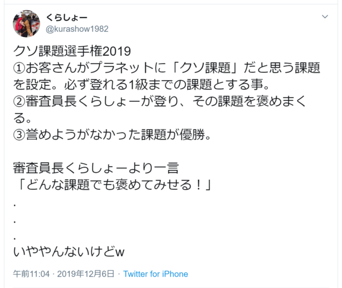 でCRAGさんでクラショー課題おもろいじゃんと思って、プラネットにも来てもらえたら嬉しいです。