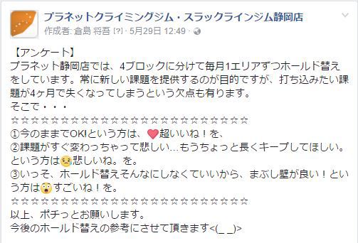 その課題はお客さんが打ち込んでいてまだ登れていない課題のほうが良いよね。