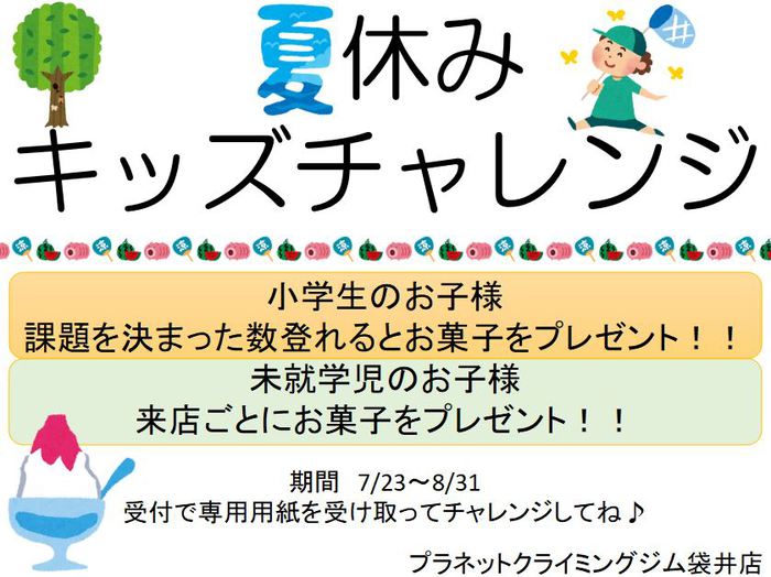 毎年恒例、夏休みキッズチャレンジを今年も開催します!!