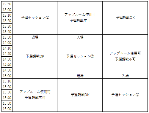 〇密集を防ぐため、予選セッションは1グループ20人までとします。