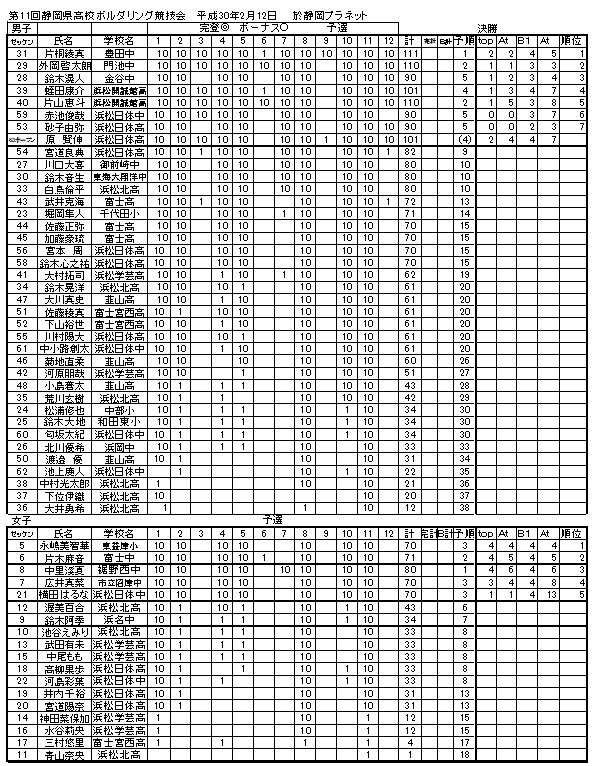 予選課題は全60本(8Q~2D)各グレード完登数に応じてptsが入ります。