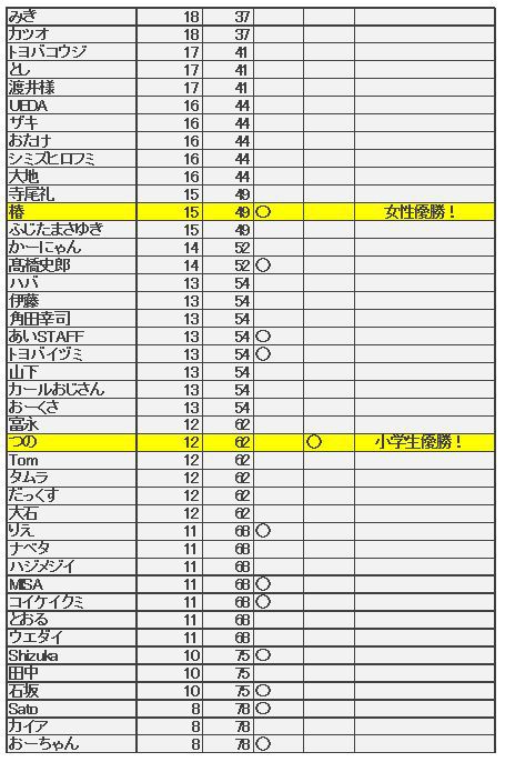 こちらの最終リザルトが出ましたので、ご参加いただいた方は下記にてご確認ください。