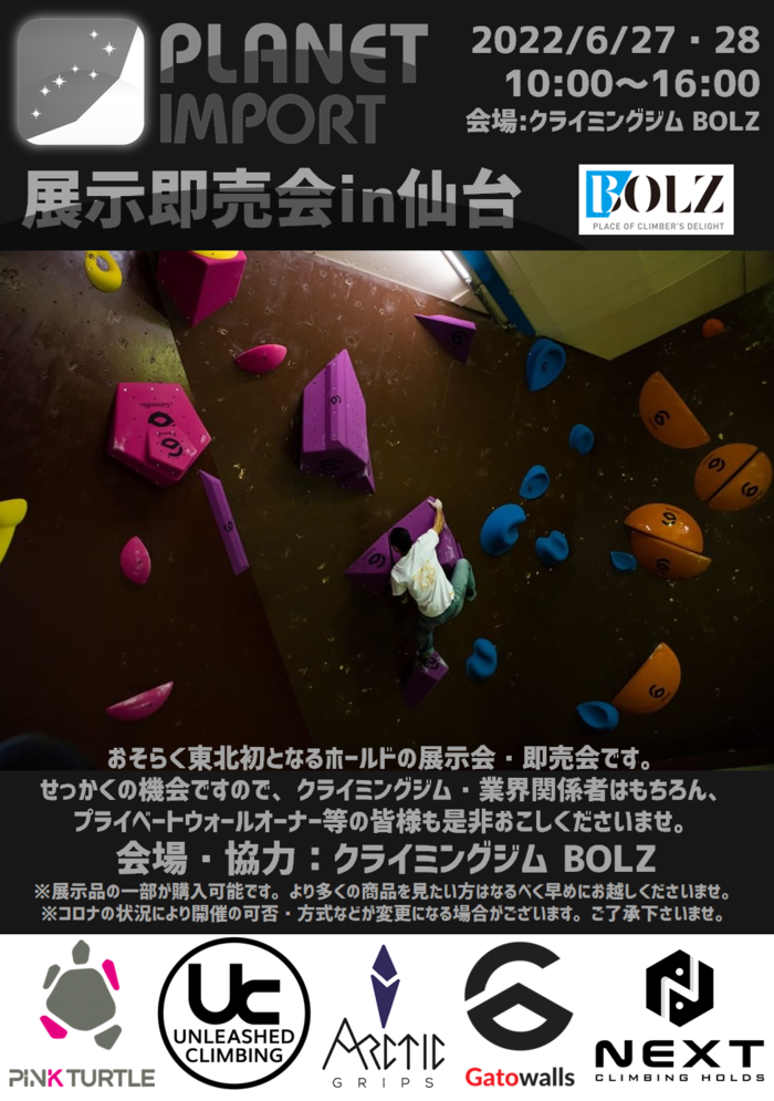 プラネットインポート・プラネットクライミング袋井店では、プラネットインポートの商品ホールド【Gatowalls・UNLEASHED CLIMBING】の試登会を開催いたします。