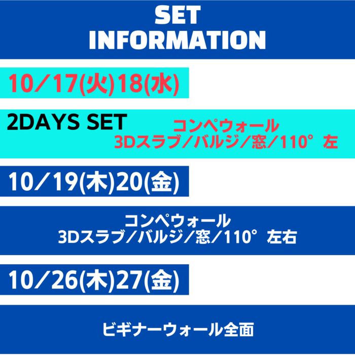 次回コンペウォールホールド替え前に2日間限定SETを行います!