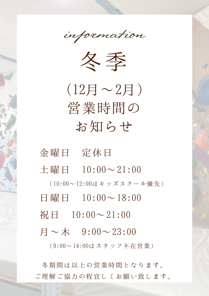 < ホールド替えのお知らせ【ビギナーウォール】 | 一覧へ戻る | 3DAYS SET【12/11(月)~13(水)】 >